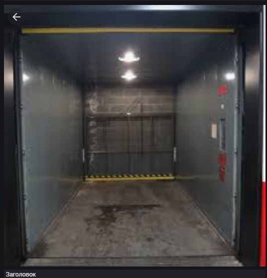 Ta winda towarowa napędzana przez układ elektryczny i hydrauliczny, podnosząca się w górę iw dół wzdłuż szyny prowadzącej.